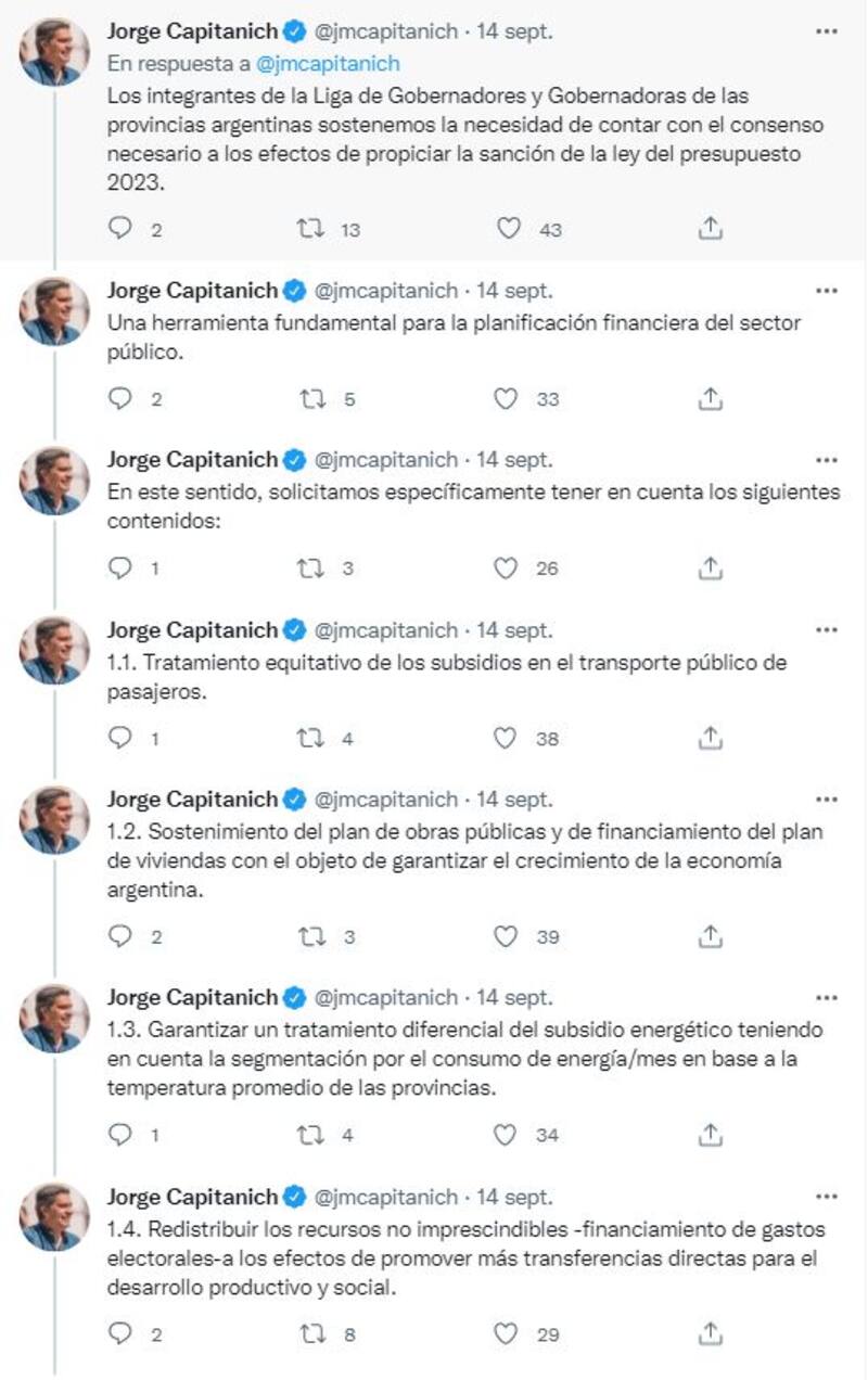 Aún así, el tema está sobre la mesa. Ese mismo día en que Manzur negaba la existencia de un proyecto, por la noche, el gobernador Jorge Capitanich le dedicó un hilo de tuits al ministro coordinador.