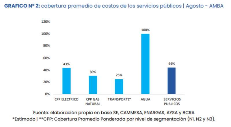 Pese a estas caídas en los subsidios, el Estado continúa cubriendo gran parte de las tarifas de las familias. El promedio en todos los servicios públicos es del 44%, aunque varía según cada uno.