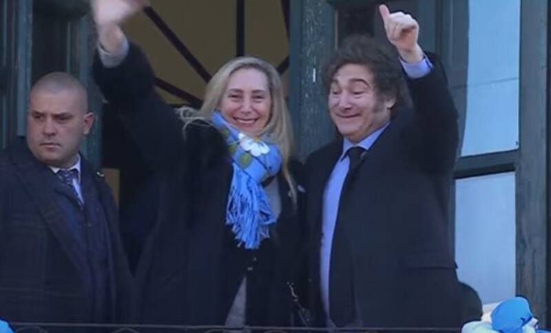 El presidente Javier Milei llegó al Cabildo de Córdoba y, junto a su hermana Karina, se asomó por un balcón para saludar a todos los presentes en las afueras del lugar.