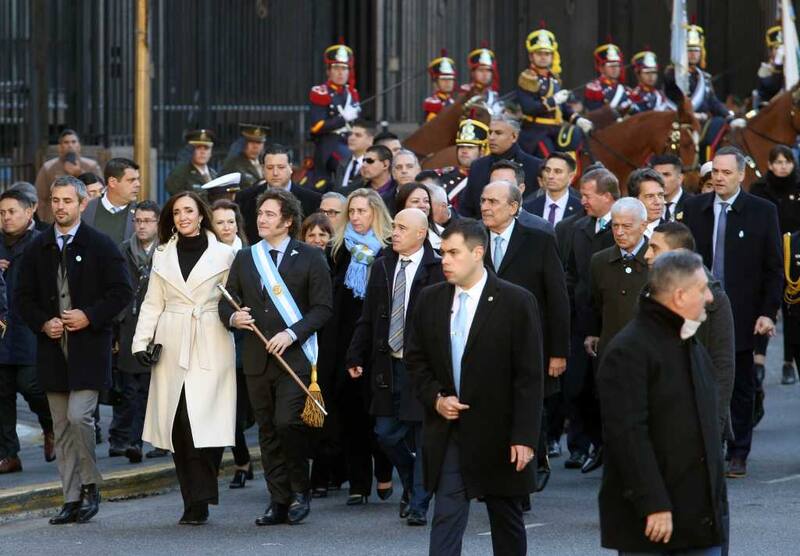 Milei y su Gabinete cruzan Plaza de Mayo en dirección a la Catedral