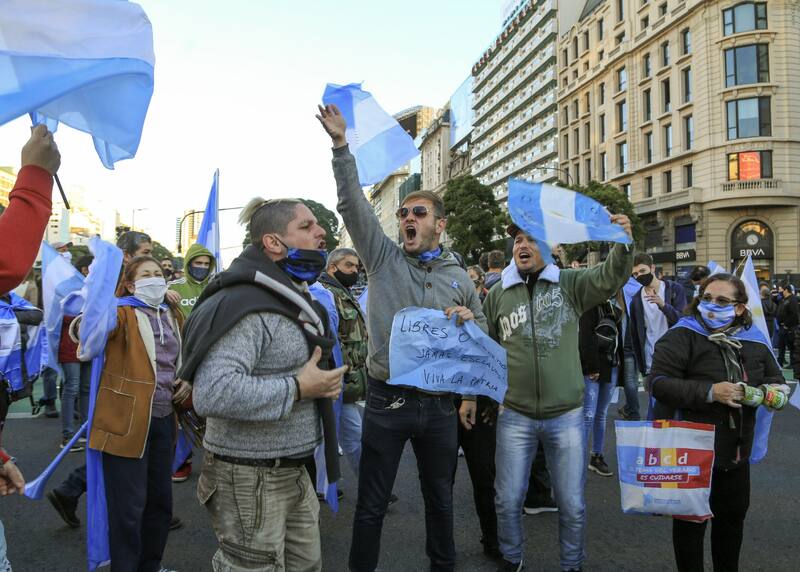Las fuerzas de seguridad detuvieron hoy en Rosario a casi 30 manifestantes en una marcha convocada frente al Monumento a la Bandera en contra del confinamiento dispuesto por el Gobierno nacional.