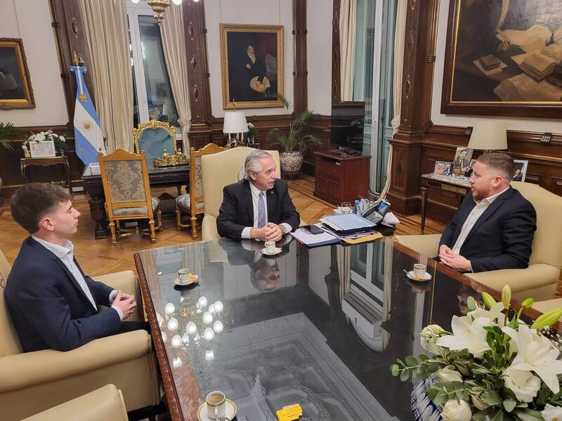 A principios de junio tuvo la oportunidad de conocer al Presidente Alberto Fernández en Casa Rosada. En esa ocasión, el joven acompañó al intendente de Dolavon, Dante Bowen, para presentar un relevamiento sobre las obras públicas que se están realizando en la localidad y el proyecto de llevar adelante un Polo Olivícola Patagónico.