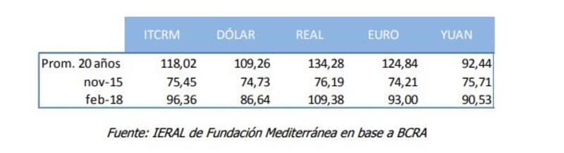 “La situación plantea un escenario más optimista en términos competitivos para Argentina, dado que se traduce en un abaratamiento de los bienes y servicios argentinos en el exterior , indicó la economista Carla Calá en un informe de Fundación Mediterránea. “No obstante, si se lo compara con el promedio de los últimos 20 años, la moneda local presenta una apreciación real de 18,4% contra la canasta de monedas y de 20,7% contra el dólar , aclaró.