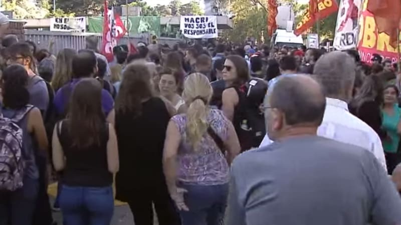 Trabajadores del Instituto Nacional de Tecnología Industrial (INTI) se concentran frente al predio ubicado en General Paz y Constituyentes y protestan contra los 250 despidos en el organismo.