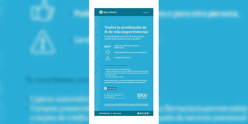 "El trámite de fe de vida o supervivencia se encuentra suspendido hasta el 28 de febrero de 2022. Recordá que, a partir de esa fecha, las entidades bancarias deberán ofrecerte alternativas no presenciales para que ya no tengas que concurrir a las sucursales o centros de pago para hacer el trámite", repasa ANSES en su sitio web.
