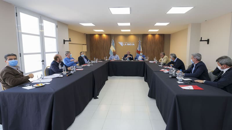 El mandatario encabezó una reunión de trabajo con gobernadores de todo el país en La Rioja, donde hace de anfitrión el mandatario local, Ricardo Quintela. Estuvieron presentes el jefe de Gabinete, Juan Manzur, y los gobernadores Sergio Uñac (San Juan), Jorge Capitanich (Chaco), Raúl Jalil (Catamarca), Alberto Rodríguez Saá (San Luis), Sergio Ziliotto (La Pampa), Gildo Insfrán (Formosa), Gerardo Zamora (Santiago del Estero) y Mariano Arcioni (Chubut).