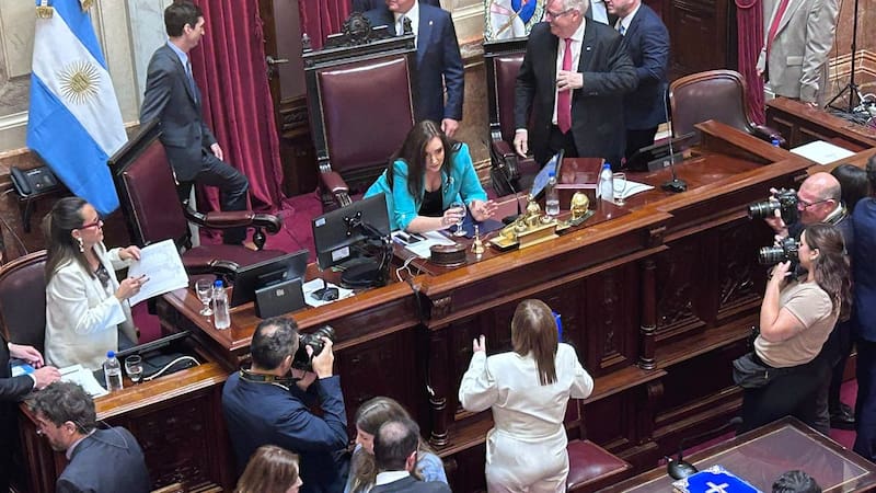 “Señores senadores, en el día de ayer acordamos en reunión de bloques que no iba a haber discursos en la sesión de hoy”, explicó Villarruel.