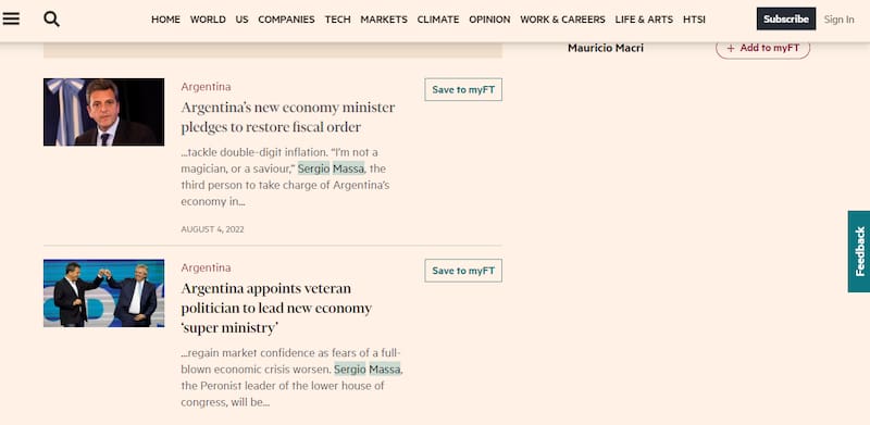 El diario españolEl Paísseñaló que el nuevo titular tiene por delante "una tarea muy complicada: sacar al país sudamenticano del descalabro en el que se encuentra". También calificó a Sergio Massa como "la última bala del peronismo para neutralizar la crisis", para titular: "Sergio Massa presenta en Argentina un plan de ajuste acorde a las exigencias del FMI".