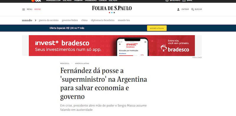 En Brasil, Folha de São Paulo reseñó que tras la profunda crisis que atraviesa Argentina, "Alberto Fernández espera que el cambio pueda representar una salvación para su gobierno", y tituló: "Fernández dio posesión al superministro de Argentina para salvar la economía y el gobierno".