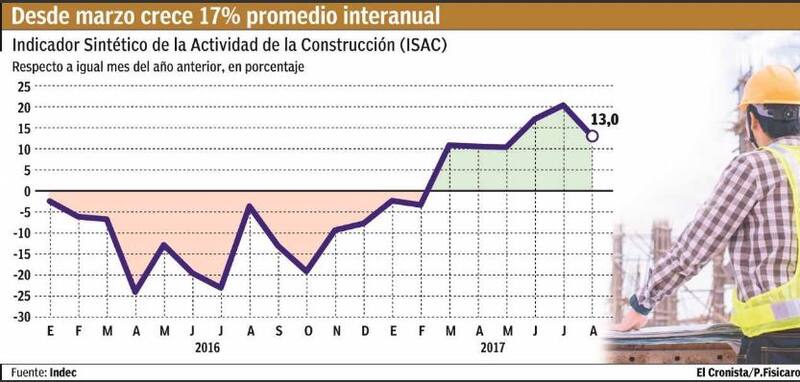 La construcción hilvanó el sexto mes consecutivo de crecimiento, al crecer 13% interanual en agosto y acumular un crecimiento del 9,5% en el año, según informó ayer el Indec, y los empresarios del sector prevén que en los próximos meses la obra pública y las inversiones privadas, impulsadas por los créditos hipotecarios, seguirán dándole impulso a la actividad.