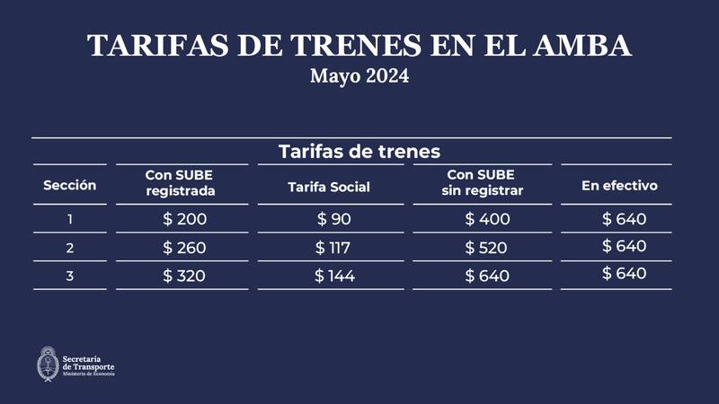 El Ministerio de Economía, a través de la Secretaría de Transporte, oficializó este lunes la propuesta de actualización del cuadro tarifario para los trenes que circulan en el Área Metropolitana de Buenos Aires (AMBA).