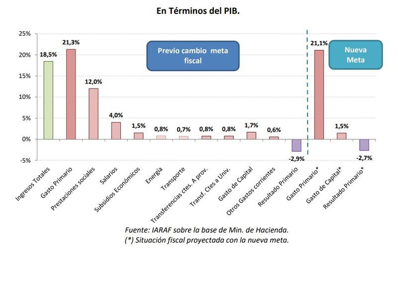 Con la suposición de que este año el Gobierno cumplirá la meta fiscal de 2,7%, el Iaraf explica que la expansión de la economía de este año y de 2019 contribuiría a bajar el gasto 0,7 puntos porcentuales con respecto al PBI si el gasto se mantiene constante en términos reales en el bienio.