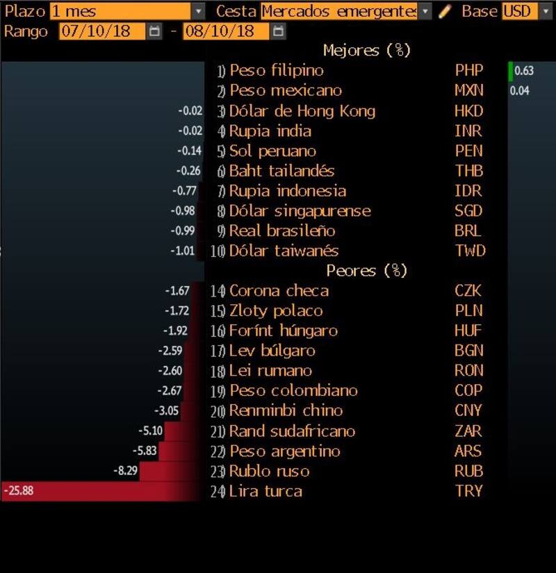 Además de estas tensiones diplomáticas, los mercados están alarmados por el rumbo de la política económica del presidente turco, mientras la autoridad monetaria de ese país se resiste a subir sus tasas para frenar una inflación que alcanzó sin embargo cerca del 16% en julio a ritmo anual.