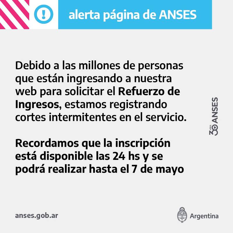 "La inscripción es exclusivamente para trabajadoras y trabajadores informales, de casas particulares, monotributistas sociales y de las categorías A y B, y será desde 21 de abril hasta el 7 de mayo a través del sitio web oficial de ANSES", indicó el organismo previsional.
