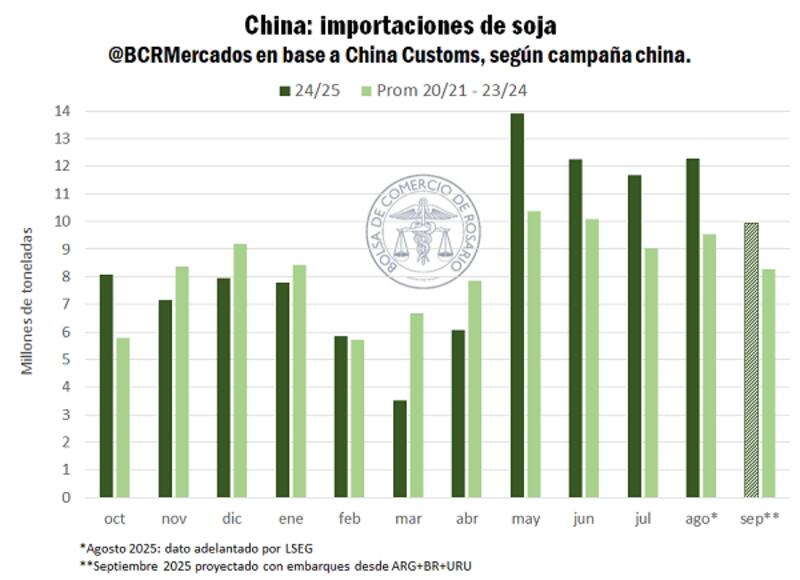 En plena turbulencia geopolítica, durante agosto el gigante asiático logró hacerse de un volumen récord de importaciones de soja con 12,2 millones de toneladas.