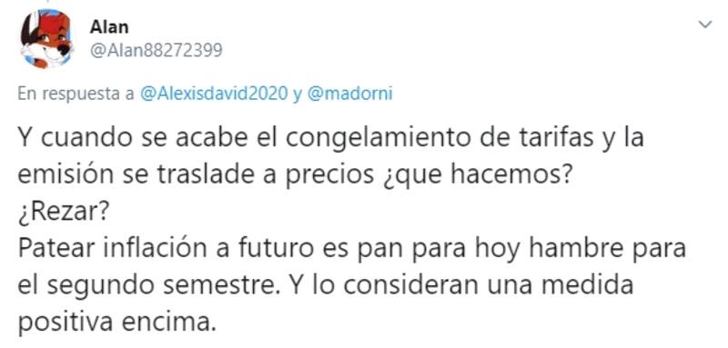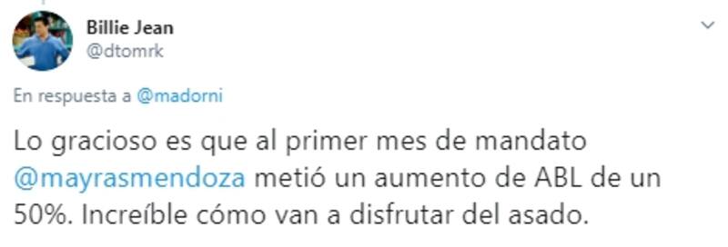 “El analista económico Miguel Adorni aprovechó ese viejo posteo y en su cuenta de la red de microblogging (@madorni), contraatacó con fuerza: “Estimada Mayra: ¿Se refiere a los jubilados que cobran más de 16.200 pesos que con el aumento que le otorgaron por decreto indefectiblemente van a perder contra la inflación?. Saludos