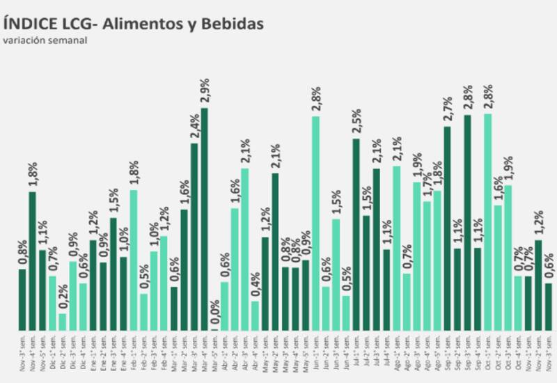 El énfasis en el rubro de alimentos y bebidas se produce debido a que es uno de los drivers que más influye en la cifra final del Índice de Precios al Consumidor (IPC) medido por el INDEC.