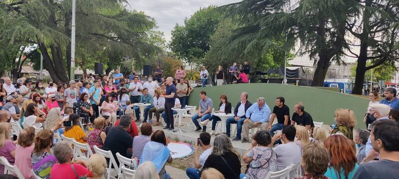 Ya en la plaza Eva Perón, ante alrededor de 200 personas que esperaban, los candidatos se sacaron varias fotos y escucharon las preguntas de los militantes. Luego cada uno habló de sus temas. Graciela Ocaña prometió que insistirán con la ley de ficha limpia luego del recambio legislativo. Patricia Bullrich se despachó con temas de seguridad y narcotráfico y recordó el caso Chocobar, quien "actuó como un policía. El verdadero orden es primero el ciudadano y la víctima".