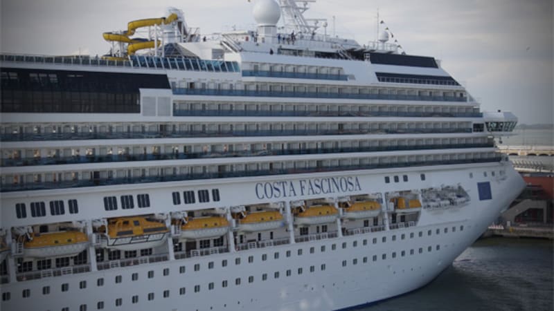El Costa Fascinosa es un gran crucero de placer con 1.508 camarotes, 5 restaurantes, 13 bares, gimnasios, termas, saunas, 4 piscinas y pista polideportiva.