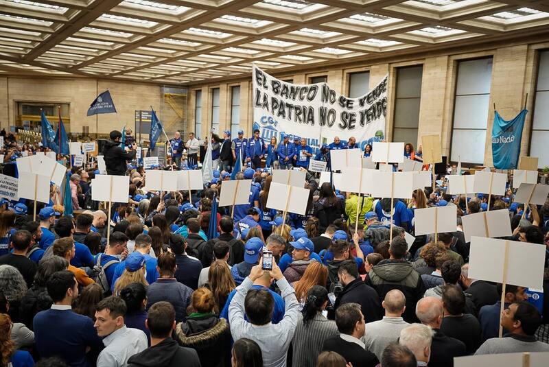 En la superficie, el sindicato armó hoy una significativa movilización hasta el Congreso para la entrega de un millón de firmas a los representantes legislativos, respaldando el proyecto para que no se privatice el BNA. "Vinieron de todo el país, de todas las regionales, de todas las provincias, fue impresionante", se entusiasmó un vocero.