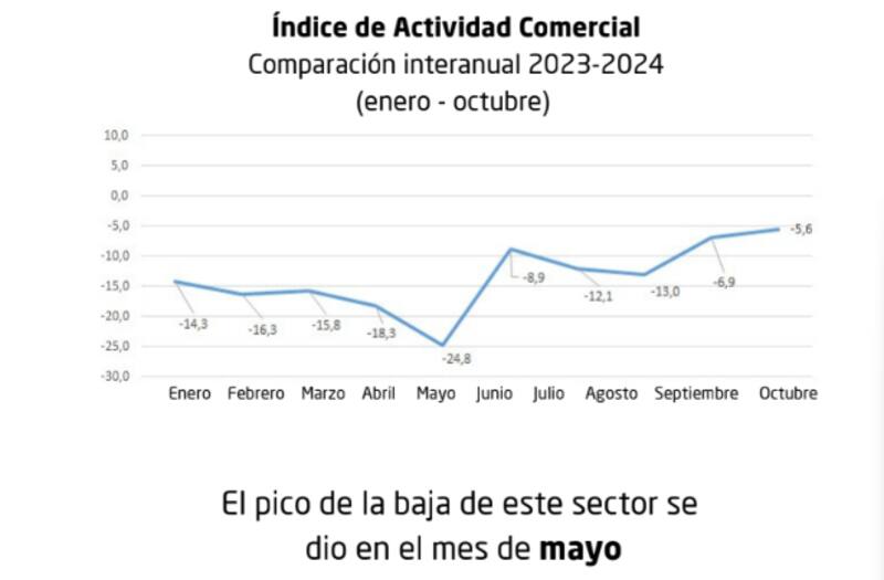Durante el presente año, la caída más relevante del comercio se registró en mayo y fue del 24,8% en relación al mismo mes de 2023.