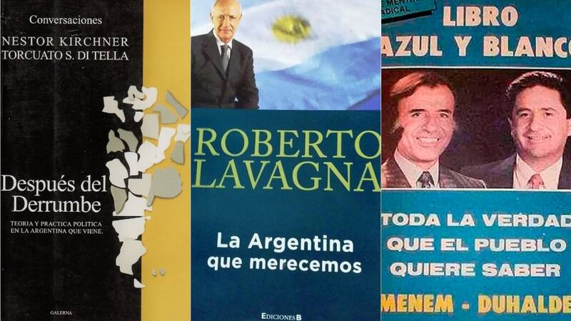 Para la caótica campaña de 2003, post-hecatombe, aún con el impulso comunicacional del duhaldismo, un cuasi ignoto Néstor Kirchner también promocionó un libro para enfrentar a un archiconocido Menem. El santacruceño apeló a un formato contante entre los políticos: "conversaciones" con Torcuato Di Tella, bautizadas "Después del Derrumbe". Piden hasta $ 2400 en Mercado Libre por un ejemplar.