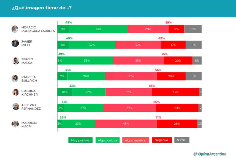 Horacio Rodríguez Larreta, el propio economista liberal y Sergio Massa ocupan el podio de imagen positiva que relevó el informe. Los dos primeros ya confirmaron su presencia en las boletas, mientras que el ministro de Economía no determinó si competirá.