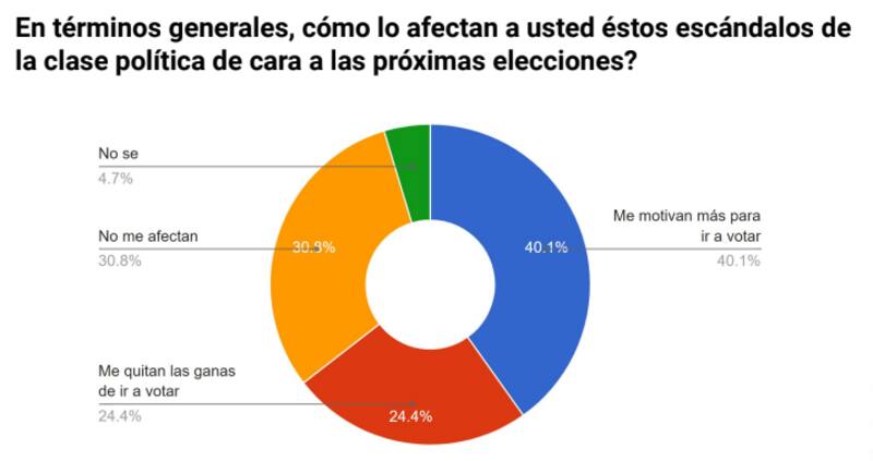En este sentido, el estudio arroja que un 40% de los consultados se sintieron más motivados para ir a votar. En cambio, algo más del 24% dijo que la polémica le "quitan las ganas de ir a votar". Ahora bien, un 30,8% dijo que el hecho no lo afecta.
