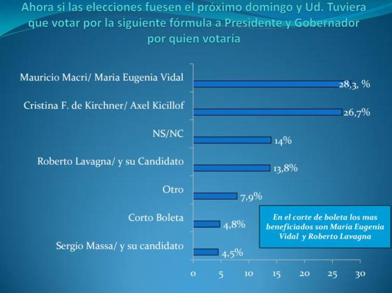 En cambio, cuando a los entrevistados se los consultó por los candidatos apresidente y gobernador, solo el 28,3% indicó que votaría por Macri y Vidal.