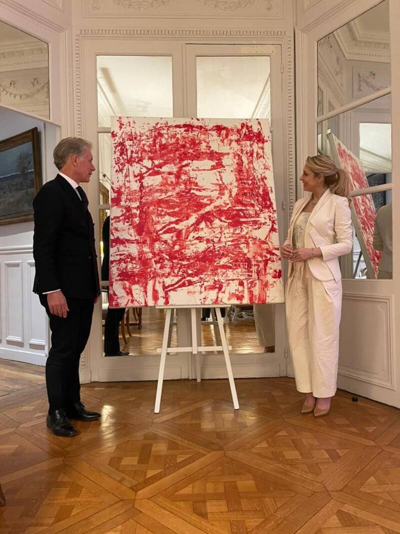 Fue en una reunión en la residencia del embajador, donde la primera dama organizó una muestra de arte y diseño argentino, consistente en la exhibición de obras premiadas desde 1911 en el Salón Nacional de Artes Visuales y también seleccionadas por la Facultad de Arquitectura, Diseño y Urbanismo (FADU) de la UBA.