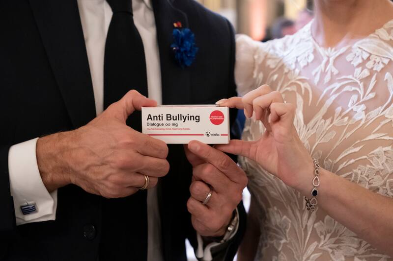 De hecho, una parte de la campaña fue revelada al dar a conocer la promoción consistente en una caja de medicamento, que proclama al diálogo como el mejor remedio contra el bullying.