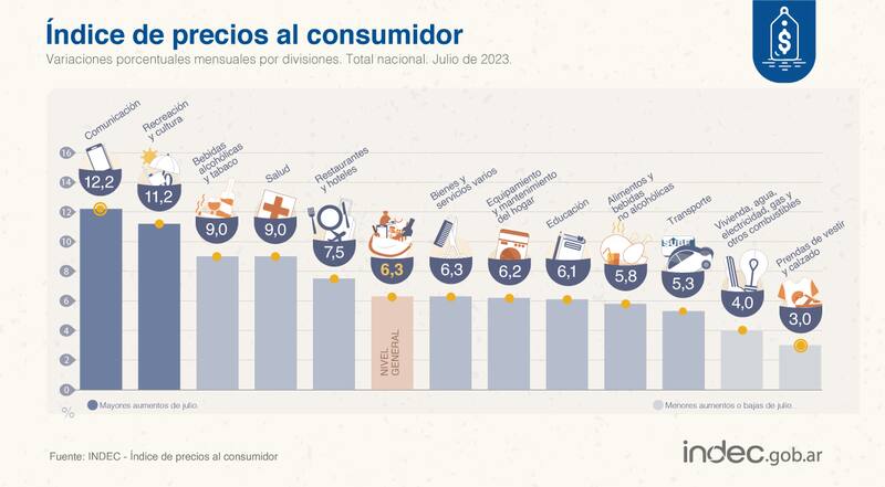 El Instituto Nacional de Estadística y Censos (INDEC) dio a conocer la inflación de julio, la cual alcanzó el 6,3% y volvió a acelerarse luego de la baja en junio. En lo que refiere a alimentos y bebidas aumentó un 5,8%, casi dos puntos porcentuales más con respecto a junio.