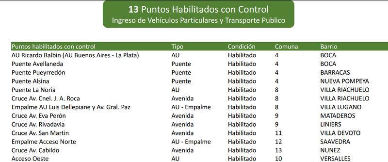 Desde hoy el Ministerio de Justicia y Seguridad porteño reforzará el control vehicular con un diagrama especial en los 110 accesos a la Ciudad de Buenos Aires, con pasos habilitados para el público general, otros exclusivos para el transporte de pasajeros y el cierre de puntos de ingreso con vallas.