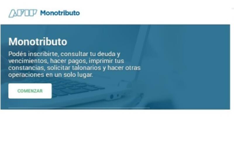1- Ingresá al Portal de Monotributo y presioná el botón "Comenzar". Para acceder al portal, deberás colocar tu CUIT y la Clave Fiscal.
