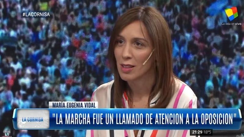 La gobernadora de la provincia de Buenos Aires, María Eugenia Vidal, consideró anoche que la marcha del 1 de abril, convocada por sectores que querían manifestar su respaldo al gobierno, fue “un llamado de atención a algunos sectores de la oposición .
