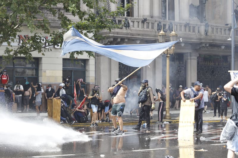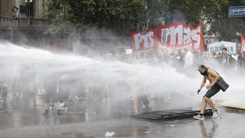 Del lado de los manifestantes lanzaron piedras, botellas y hasta las denominadas bombas molotov, mientras que la policía arrojó gases lacrimógenos, disparó con balas de goma y puso en acción a los camiones hidrantes apostados en el lugar.