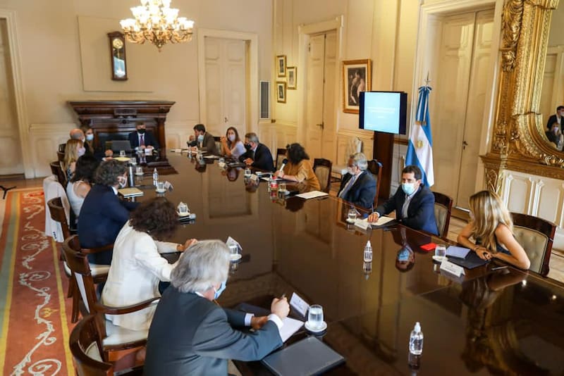 De la reunión participaron el jefe de Gabinete, Santiago Cafiero; las ministras de Salud, Carla Vizotti, y de Seguridad, Sabina Frederic; los ministros del Interior, Eduardo de Pedro; de Defensa, Agustín Rossi; de Desarrollo Social, Daniel Arroyo; de Relaciones Exteriores, de Transporte, Mario Meoni; y de Turismo y Deportes, Matías Lammens.