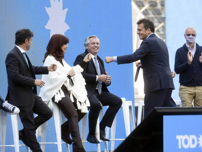 Junto a ella estuvieron el presidente Alberto Fernández; el gobernador bonaerense, Axel Kicillof; el presidente de la Cámara de Diputados, Sergio Massa; el titular del bloque de diputados del Frente de Todos, Máximo Kirchner; y los candidatos Victoria Tolosa Paz y Daniel Gollan, entre otros.