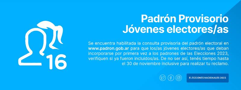 La Cámara Nacional Electoral (CNE) habilitó la consulta provisoria y extraordinaria del padrón electoral, para que los jóvenes que deban incorporarse por primera vez a los padrones de la elección del año próximo verifiquen si ya fueron incluidos de manera correcta.