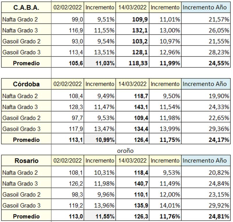 • En las estaciones de servicio de YPF de Buenos Aires, el litro de nafta súper subió de $ 99 a $109,9, mientras que la premium trepó de $ 116,90 a $ 132,1;