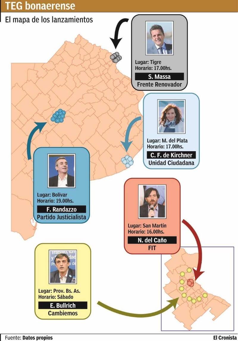Si bien ya hubo presentaciones, actos, recorridas y hasta pegatinas de afiches, será recién pasado mañana, como fijó el cronograma electoral 2017, cuando comenzará legalmente la campaña para las PASO del 13A. Los principales precandidatos de la clave provincia de Buenos Aires, que concentra casi el 40% del padrón, no dejarán pasar el día para subirse a un escenario.