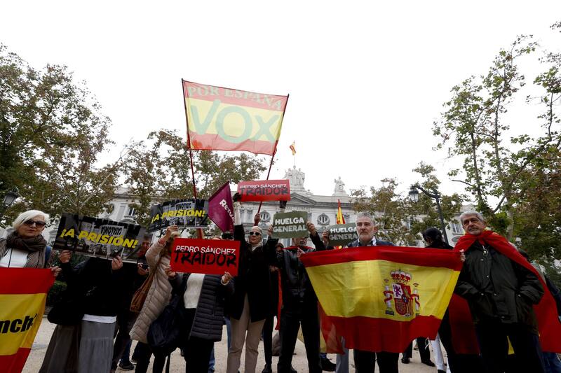 El líder de Vox añade a Clarín: "Yo tengo unos principios. No puedo venderlos. Sánchez no tiene ninguno. Puede pisar las leyes, puede hacer cualquier cosa, puede poner en riesgo la unidad nacional. Eso le da una ventaja competitiva. Habrá un momento dado que el pueblo querrá que querrá colgarlo de los pies".