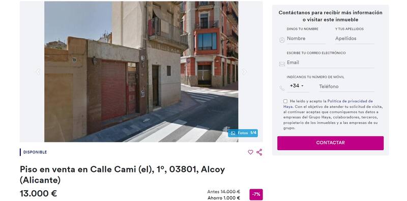 Este piso demolido se encuentra en Calle Cami (el), 1°, 03801 de la localidad de Alcoy. Se sitúa en la primera planta del edificio plurifamiliar en el mencionado municipio de la provincia de Alicante, cuenta con una superficie de aproximadamente 44 metros cuadrados y está en pleno núcleo urbano.