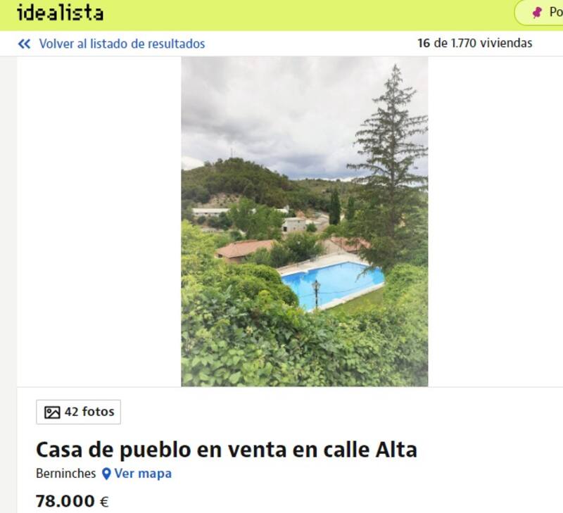 Por un precio más elevado (78.000 euros), se halla esta otra casa de pueblo de 159 m2 y seis habitaciones.