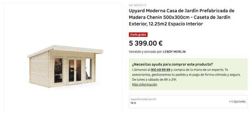 No obstante, de momento se encuentra agotada pero también esta disponible en Leroy Merlin con uno de los modelos más completos a 5400 euros bajo el nombre "Caseta de Jardín Exterior".