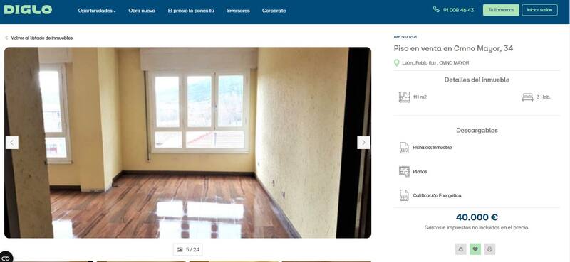 "La finca se encuentra muy cerca de la estación de tren de La Robla y del acceso a la carretera N-630 por lo que goza de buenas comunicaciones", detallan desde Diglo.