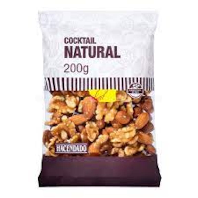 Este paquete tiene 200 gramos y viene un mix de frutos secos. Tiene 100 gramos aportan 651 calorías, 58,8 gramos de grasas (5,9 gramos saturadas, 20,5 gramos monoinsaturadas y 32,3 gramos poliinsaturadas), 5,6 gramos de carbohidratos (de los 5,2 gramos son azúcares), 9 gramos de fibra, 20,4 gramos de proteína y 0 gramos de sal. Su precio es de 2,50 euros.