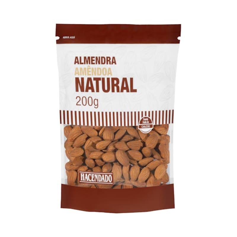 Las almendras son otras de las alternativas que se consumen diariamente. Estas almendras tienen 100 gramos, el valor nutricional marca 621 calorías, 53,6 gramos de lípidos. Contienen 4,7 gramos de grasas saturadas, 38,8 gramos de monoinsaturadas y 9,9 gramos de poliinsaturadas), 7,8 gramos de carbohidratos (3,9 gramos de azúcares), 10,3 gramos de fibra alimentaria, 21,8 gramos de proteína y 0 gramos de sal. Su precio es de 2,64 euros.