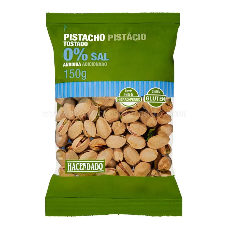 El paquete de pistacho tiene 250 gramos. Se destaca por contener 617 calorías, 51 gramos de grasas y a su vez tiene 6,4 gramos saturadas, 30 gramos monoinsaturadas y 15 gramos poliinsaturadas. Luego contiene 10 gramos de carbohidratos (8,3 gramos de azúcares), 8,9 gramos de fibra, 25 gramos de proteína, además de hierro, magnesio y fósforo como el anterior. El paquete se puede encontrar en las góndolas por 3,30 euros.