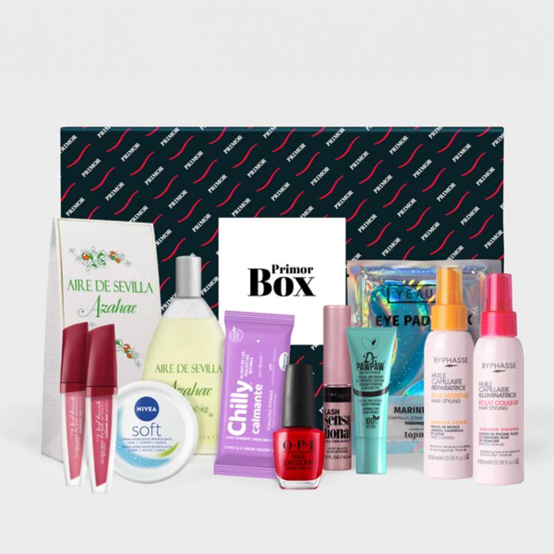 Una Primor Box es una combinación entre 6 y 8 productos tamaño venta o mini tallas con productos variados de maquillaje, perfumería, cosmética, cuidado personal y accesorios. También puede incluir una tarjeta de regalo con un valor de hasta 100 euros.
